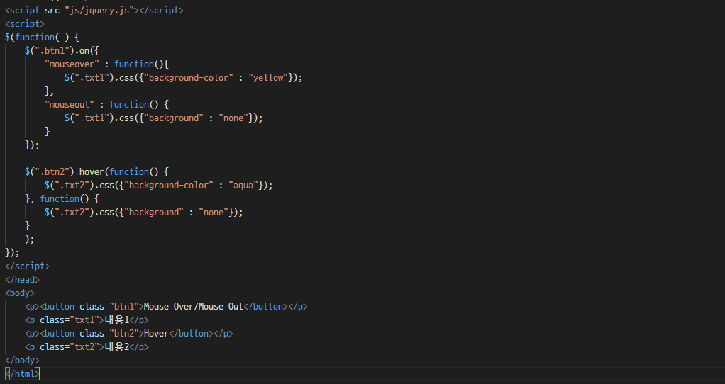 2๏ธโฃ mouseover() / mouseout() / hover() ์ด๋ฒคํธ ๋ฉ์๋
