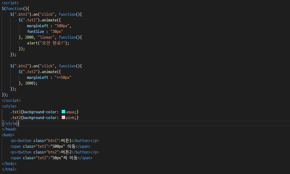 $("์์ ์ ํ").animate({์คํ์ผ ์์ฑ}, ์ ์ฉ ์๊ฐ, ๊ฐ์๋, ์ฝ๋ฐฑํจ์)