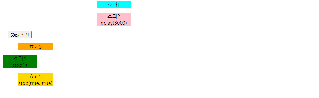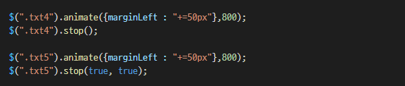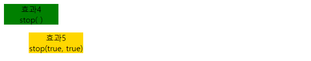 stop(true, ture)λ μ μ₯μμ λκΈ° μ€μΈ μ λλ©μ΄μ μ μ κ±°νκ³ , νμ¬ μ§νμ€μΈ μ λλ©μ΄μ λ μ’ λ£λ μμ μΌλ‘ μ΄λνλ€.