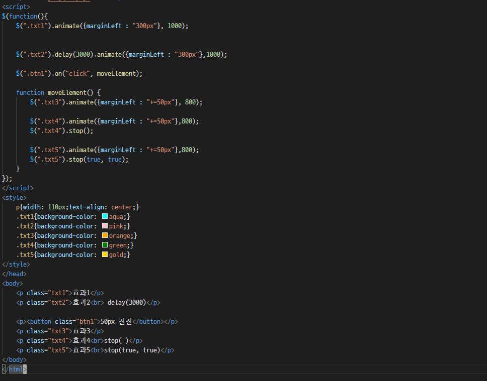 stop() λ©μλλ μμμ μ μ©ν μ λλ©μ΄μ μ μ μ§μν€κ³ , delay() λ©μλλ μμμ μ μ©ν μ λλ©μ΄μ μ μ§μ ν μκ°λ§νΌ μ§μ°μν¨λ€.