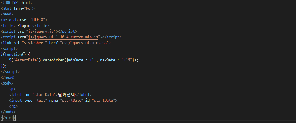 minDate : +1 ๊ณผ maxDate : "+1M"ํ๋ฉด