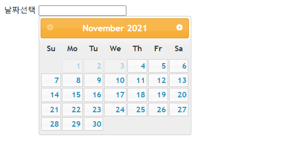 ์ด๋ฒ์ ๋ฐ๋ชจ์ Datepicker๋ฅผ ์ ํํด์ view sources๋ฅผ ๋ณด๋ฉด ์์ค๋ฅผ ๋ณผ ์ ์๋ค.