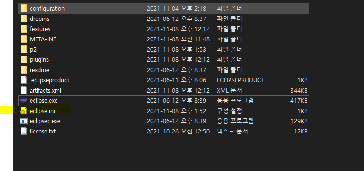 eclipse.ini ์์ vm ๊ฒฝ๋ก๋ฅผ ๋ฐ๊ฟ์คฌ๋๋ ์คํ๋๋ค ใ ใ