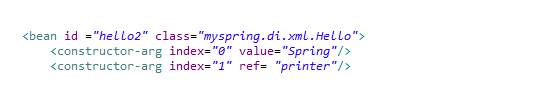 Constructor(์์ฑ์)๋ฅผ ํตํด ์์กด๊ด๊ณ๊ฐ ์๋ Bean์ ์ฃผ์ ํ๋ ค๋ฉด <constructor-arg> ํ๊ทธ๋ฅผ ์ฌ์ฉํ ์ ์๋ค.