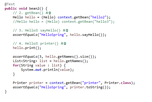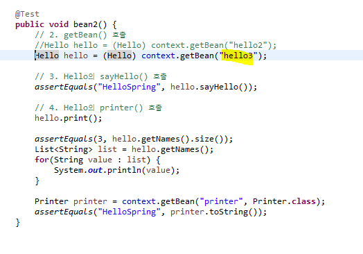 bean id๊ฐ์ด hello2 getBean ํธ์ถ ํ