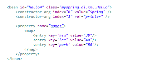 - Map ํ์ : <map> ๊ณผ <entry> ํ๊ทธ ์ฌ์ฉ