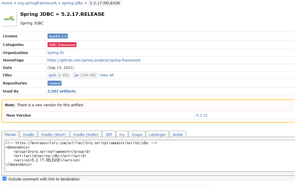 https://mvnrepository.com/artifact/org.springframework/spring-jdbc/5.2.17.RELEASE