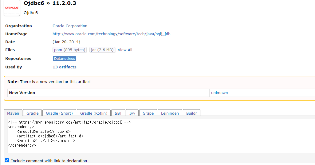 https://mvnrepository.com/artifact/oracle/ojdbc6/11.2.0.3