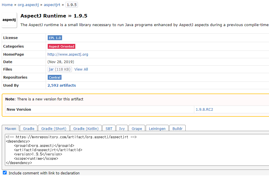 https://mvnrepository.com/artifact/org.aspectj/aspectjrt