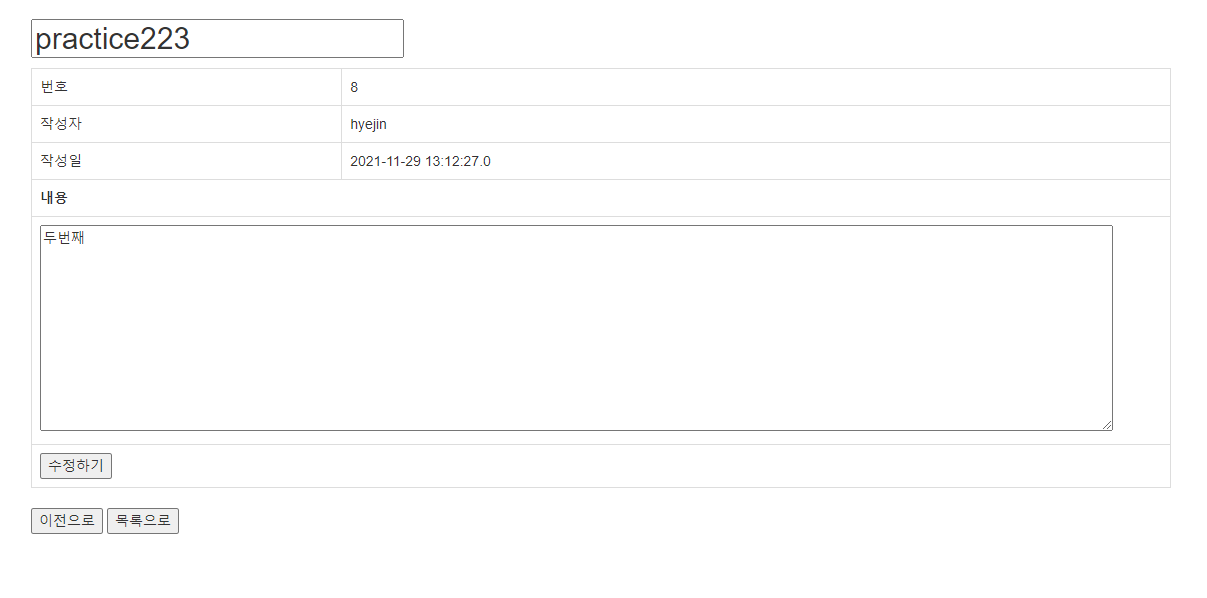 ๊ธ์ ๋ฑ๋กํ ํ์๋ ๋ค์ ๋ฆฌ๋ค์ด๋ ํธํ์ฌ list.do๋ก ์ด๋ํ๋ค.