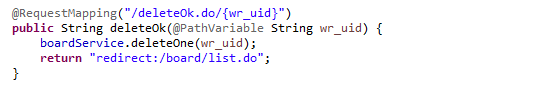 BoardController์์๋ @PathVariable ์ด๋ ธํ ์ด์ ์ ํตํด ํ๋ผ๋ฏธํฐ๋ฅผ urlํ์์ผ๋ก ๋ฐ์ ์ ์๋๋ก ํด์ค๋ค.