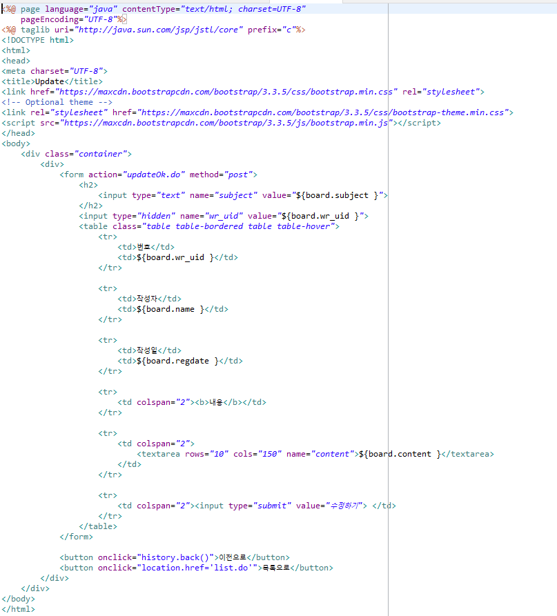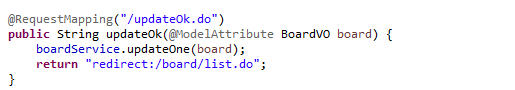 ๊ธ์ ์์ ํ ํ์ ์์ ๋ฒํผ์ ๋๋ฅด๋ฉด updateOk.do๊ฐ ์คํ๋๋ฉด์ ๊ธ ์์ ์ ๋ฐ์ดํฐ๋ฒ ์ด์ค์ ๋ฐ์ํ๊ณ ๋ ํ์