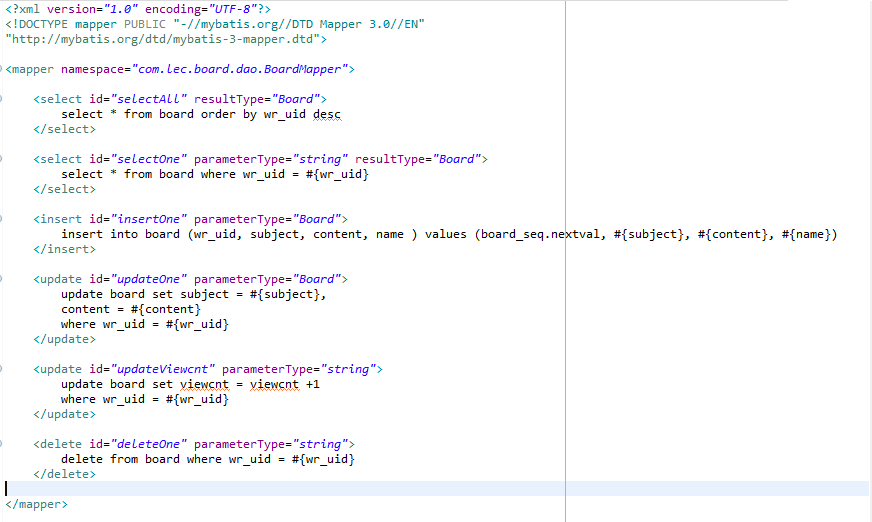 4๏ธโฃ MyBatis ์ค์ ํ์ผ ์์ฑํ๊ธฐ(Vo๊ฐ์ฒด์ค์ ) SqlMapConfig.xml , Mapping ํ์ผ ์์ฑ Board.xml