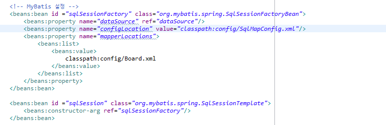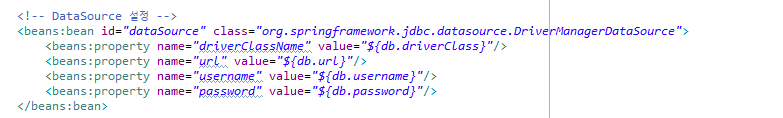 Spring ์ค์ ํ์ผ์ธ servlet-context.xml์ dataSource์ mybatis ๋ฑ์ ๋น์ ์ถ๊ฐํด์ค๋ค.