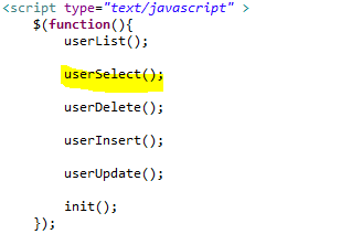 html ํ์ด์ง๊ฐ ๋ก๋๋ ๋ userSelect() ๋ฉ์๋๋ฅผ ํธ์ถํ๋ค.
