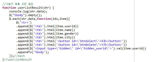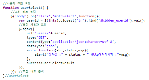 ์ฌ์ฉ์ ์กฐํ์ ๋ํ ์์ฒญ์ด ์ค๋ฉด userSelectResult ํจ์๊ฐ ์คํ๋๋ค.