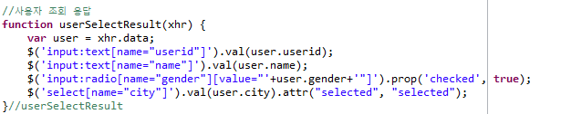 var user = xhr.dataํด์ user๊ฐ์ ๊ฐ์ ธ์จ๋ค.