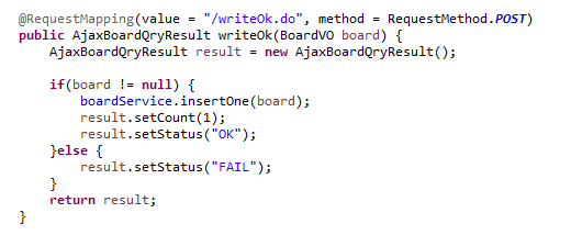 ์๋ก์ด ๊ธ์ ์ถ๊ฐํ๊ณ ๋ฆฌํดํ ๊ฐ์ฒด๋ก AjaxBoardQryResult ๊ฐ์ฒด๋ฅผ ์์ฑํ๋ค.