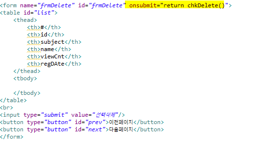 <form name="frmDelete" id="frmDelete" onsubmit="return chkDelete()">