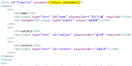 <td><input type="text" id="subject" placeholder="๊ธ์ ๋ชฉ" required/></td>
