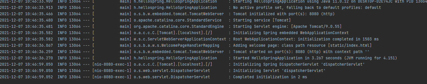 Spring boot๊ฐ ์์์ welcome page๋ก ์ธ์ํ๊ณ ๊ทธ ํ์ด์ง๋ฅผ ์์ ํ์ด์ง๋ก ๋ณด์ฌ์ฃผ๊ฒ ๋๋ค.