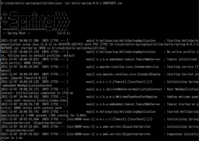 java -jar hello-spring-0.0.1-SNAPSHOT.jar ํด์ฃผ๋ฉด