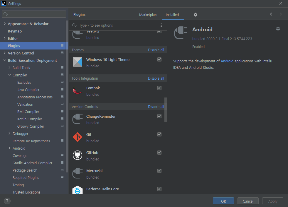 ๊ทธ๋์ installed๋ฅผ ํด๋ฆญํด๋ณด๋ Lombok์ด ์ด๋ฏธ ์ค์น๋์ด ์์๋ค.