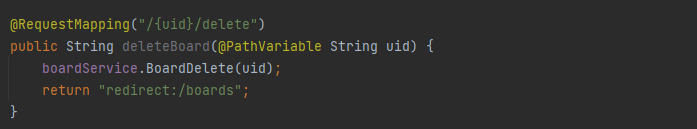 ์ด๋๋ /boards/{uid}๋ก ํด๋น ๊ฒ์๊ธ์ uid ๋ก ์กฐํํ๋ค.