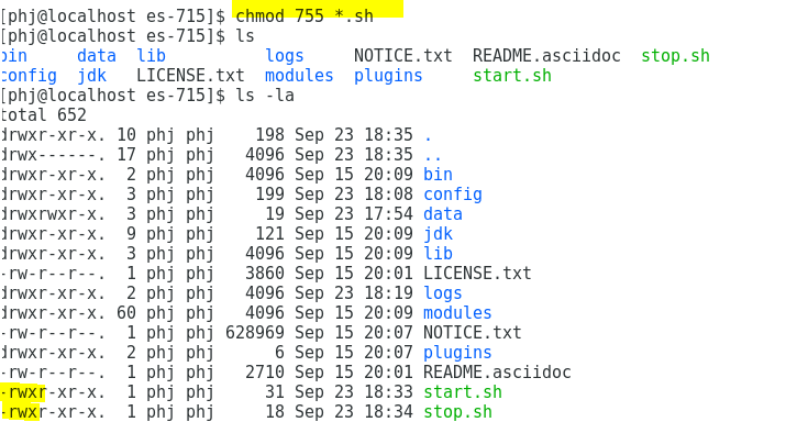 chmod 755 *.sh ํด์ฃผ๋ฉด ๋ฐ์ ๋ณ๊ฒฝ๋๊ฑธ ํ์ธํ ์ ์๋ค.
