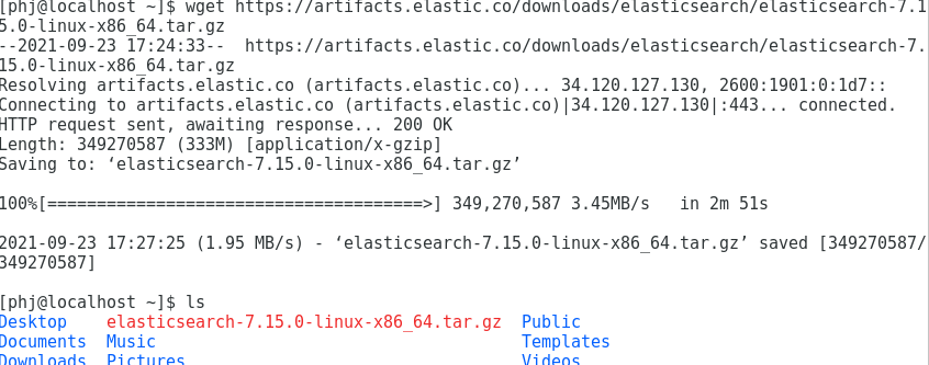2. ํฐ๋ฏธ๋์์ wget ๋ช ๋ น์ด๋ก ๋ค์ด๋ก๋