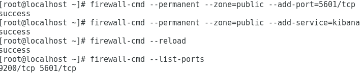 # firewall-cmd --permanent --zone=public --add-service=kibana