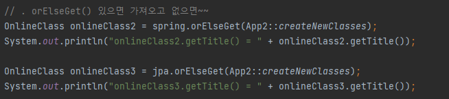 : Optional์ ๊ฐ์ด ์์ผ๋ฉด ๊ฐ์ ธ์ค๊ณ ์๋ ๊ฒฝ์ฐ์๋ ~~๋ฅผ ๋ฆฌํดํ๋ผ.