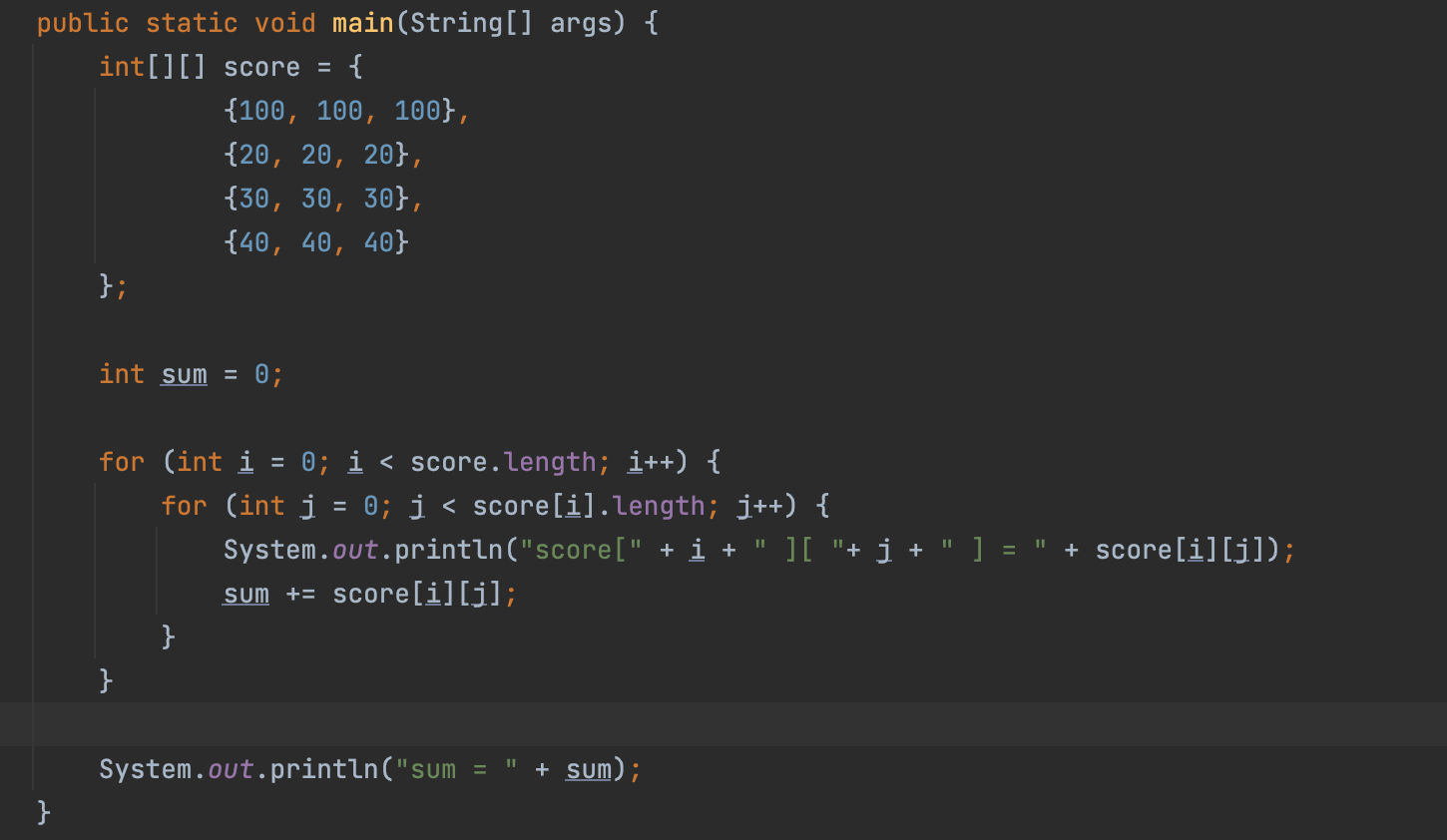 ํ์ [][] ๋ณ์์ด๋ฆ;