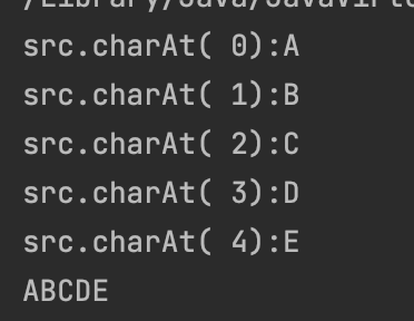 charAt(int index) : ๋ฌธ์์ด์์ ํด๋น ์์น index์ ์๋ ๋ฌธ์๋ฅผ ๋ฐํํ๋ค.