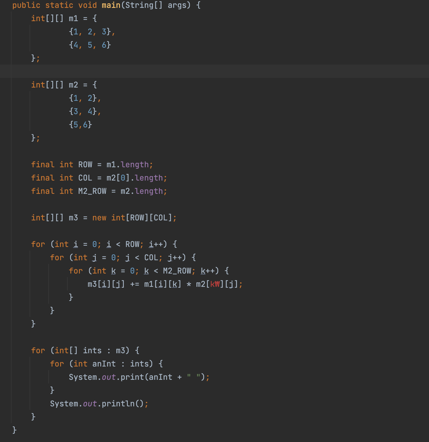 [JAVA] ํ๋ก๊ทธ๋๋จธ์ค ๋ ๋ฒจ2. ํ๋ ฌ์ ๊ณฑ์