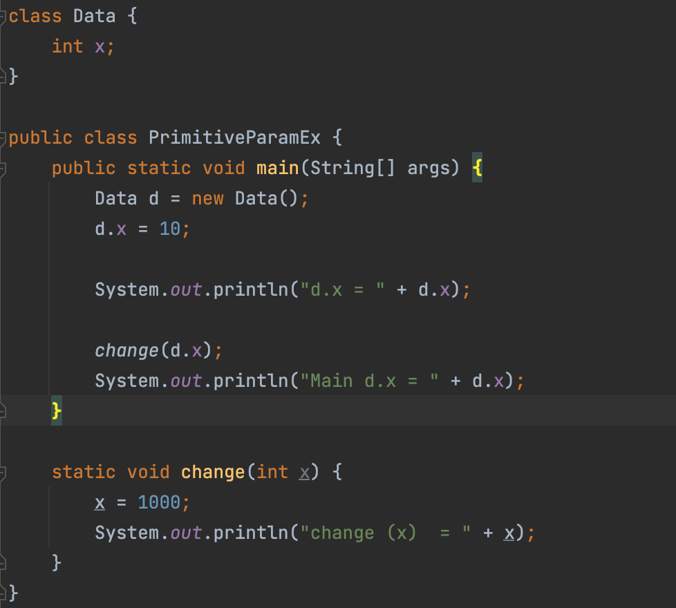 change(int x)๋ ๊ธฐ๋ณธํ ๋งค๊ฐ๋ณ์