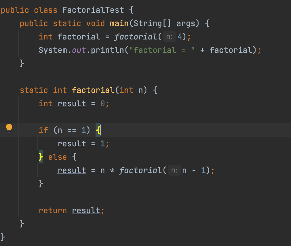f(n) = n * f(n-1), ๋จ f(1) = 1