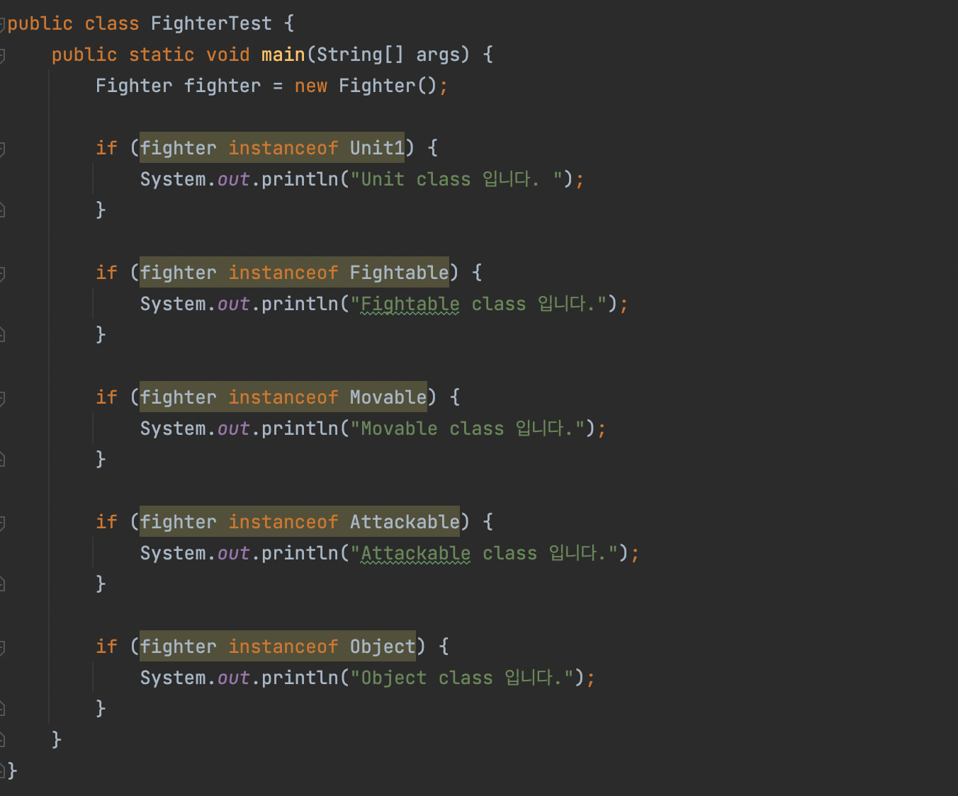 -> Fighter ν΄λμ€λ Unit ν΄λμ€λ‘λΆν° μμλ°κ³ , Fightable μΈν°νμ΄μ€λ§μ ꡬννμ§λ§,