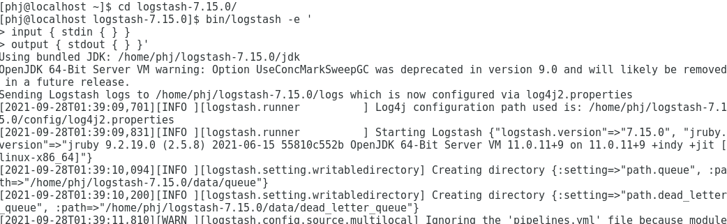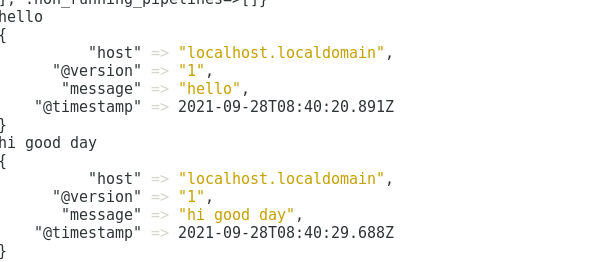 stand input, stand output์ผ๋ก ์ค์ ํด logstash ์คํํ๊ณ ์ ๋ ฅํ๋ฉด ๊ทธ ์ ๋ ฅ๊ฐ์ผ๋ก ์ถ๋ ฅํ๊ฒ ๋๋ค.