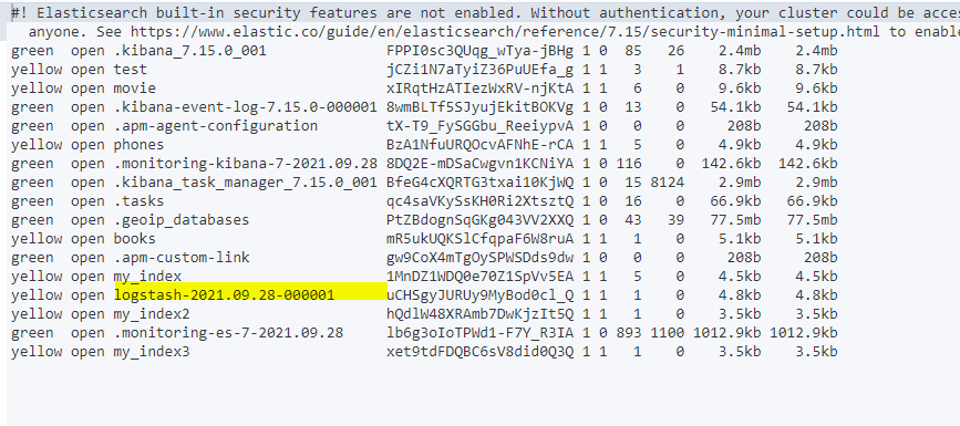 ๋น์ผ ๋ ์ง๋ก logstash ์ธ๋ฑ์ค๊ฐ ์์ฑ๋๊ฑธ ํ์ธํ ์ ์๋ค.