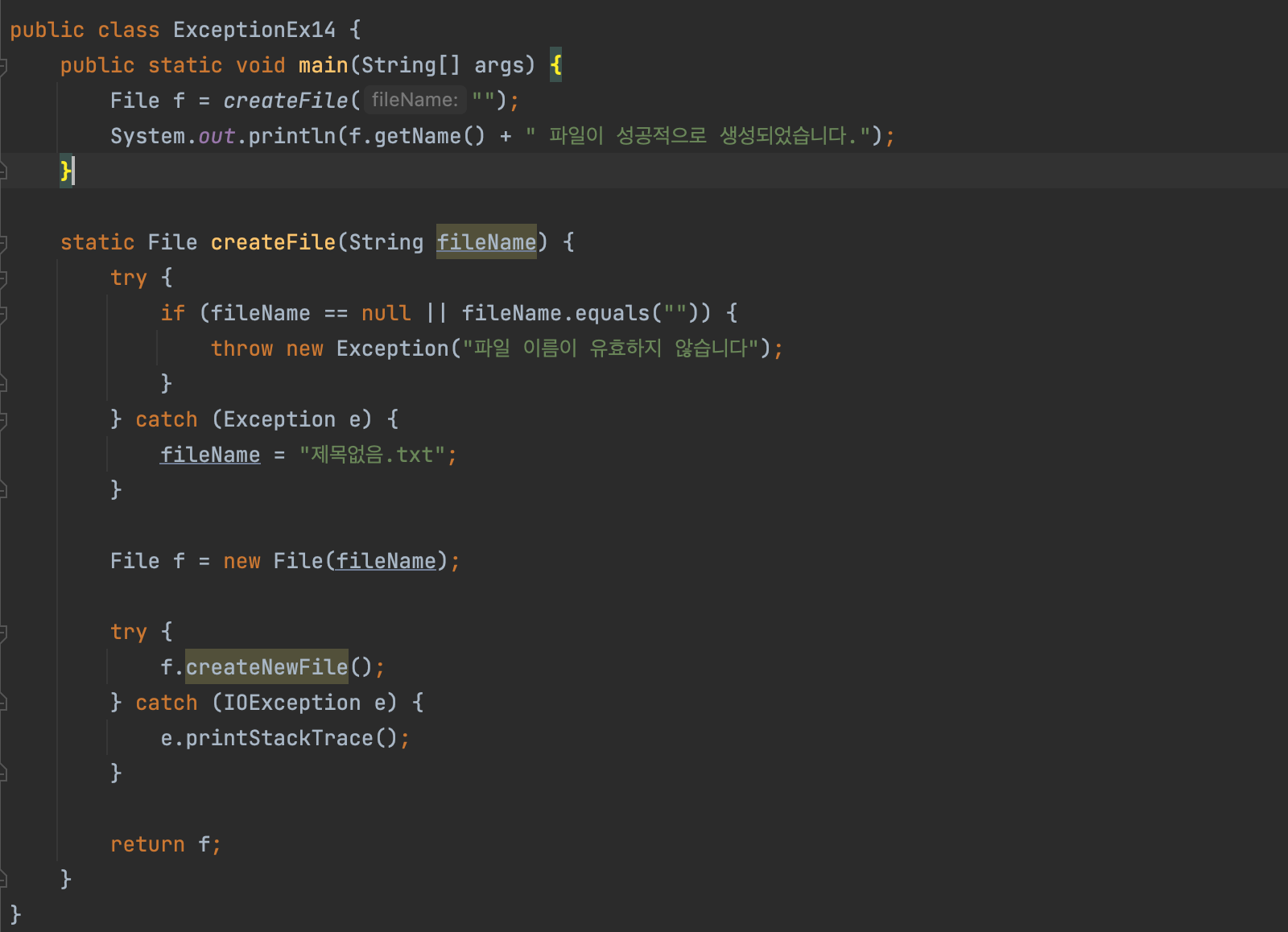 μ΄ λ μ£Όμν΄μΌν μ μ μμΈκ° λ°μν λ©μλμμλ try-catchλ¬Έμ μ¬μ©ν΄μ μμΈμ²λ¦¬λ₯Ό ν΄μ€κ³Ό λμμ λ©μλμ μ μΈλΆμ λ°μν μμΈλ₯Ό throwsμ μ§μ ν΄μ€μΌ νλ€λ κ²μ΄λ€.
