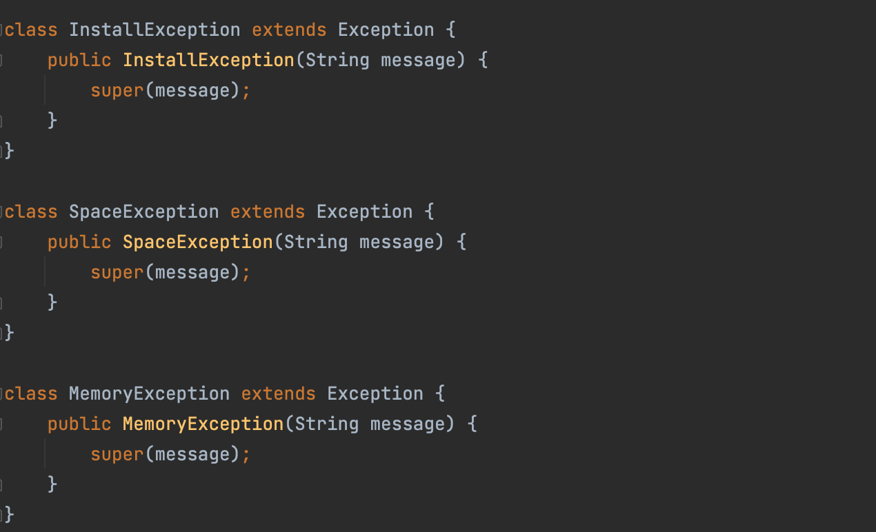 λ³΄ν΅ Exception ν΄λμ€ λλ RuntimeException ν΄λμ€λ‘λΆν° μμλ°μ ν΄λμ€λ₯Ό λ§λ€μ§λ§, νμμ λ°λΌμ μλ§μ μμΈ ν΄λμ€λ₯Ό μ νν μ μλ€.
