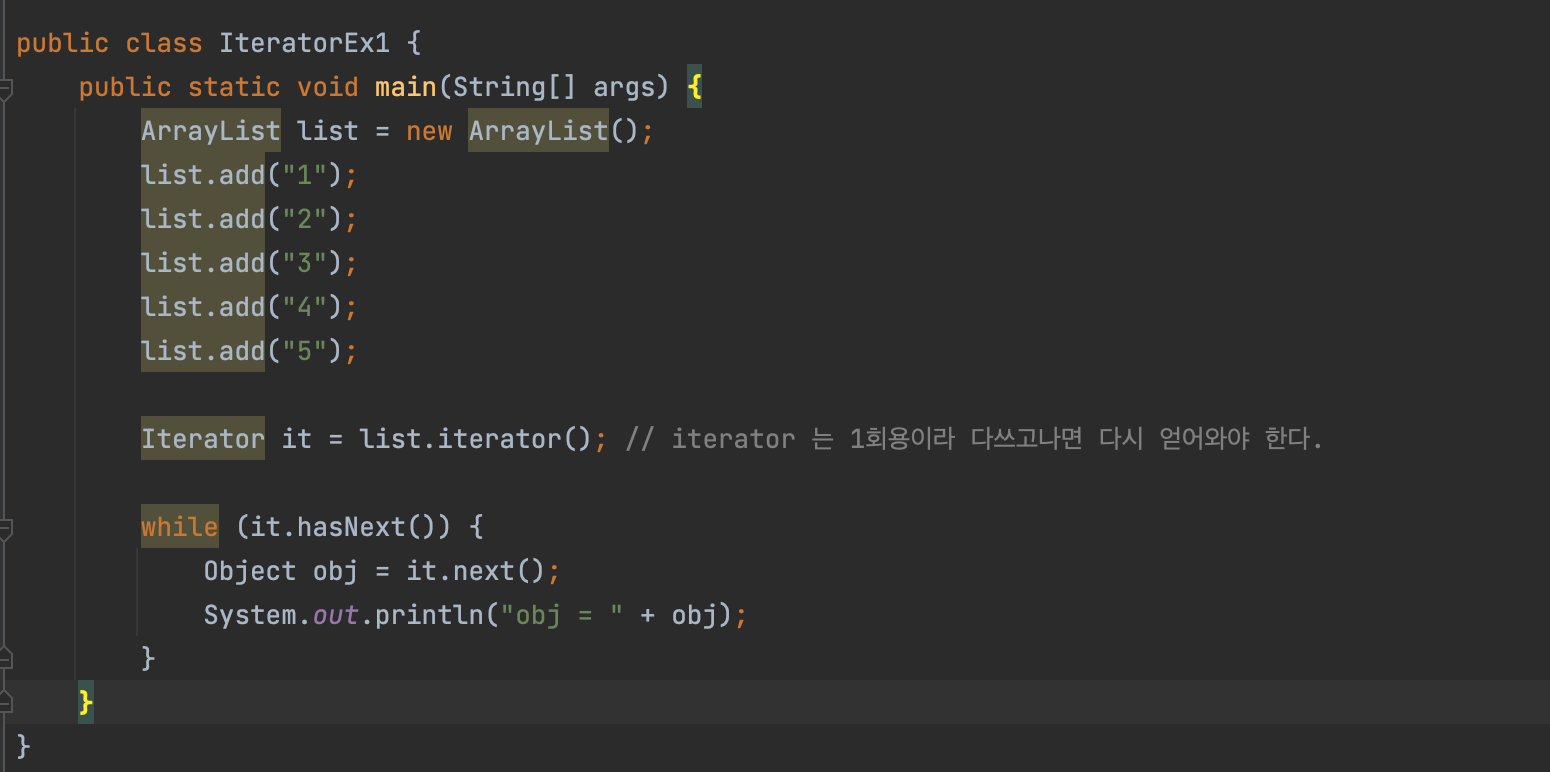 μ£Όλ‘ while λ¬Έμ μ¬μ©ν΄μ 컬λ μ ν΄λμ€μ μμλ€μ μ½μ΄μ¬ μ μλ€.
