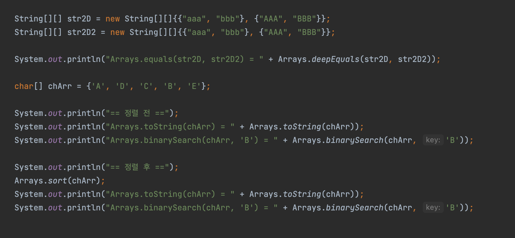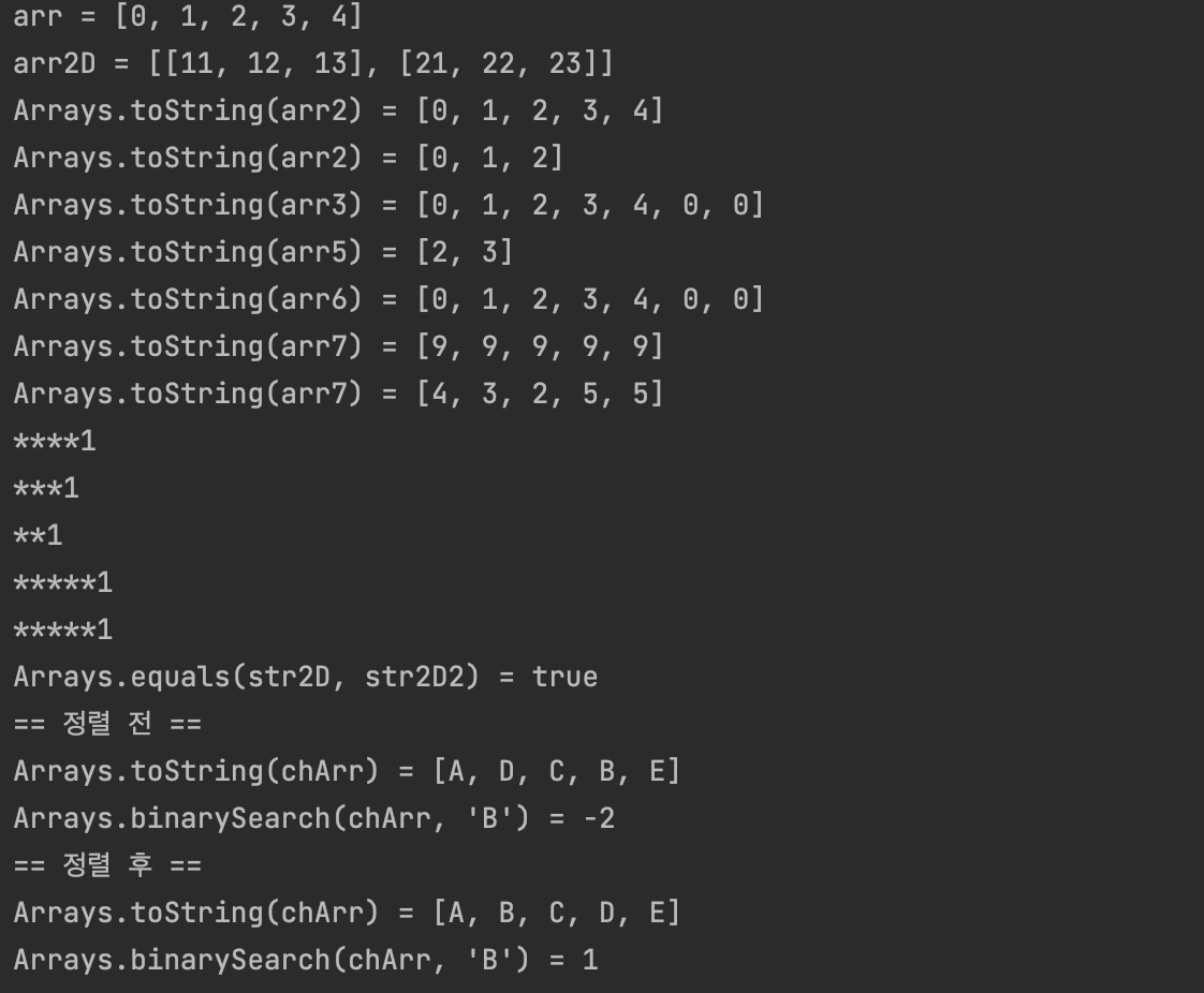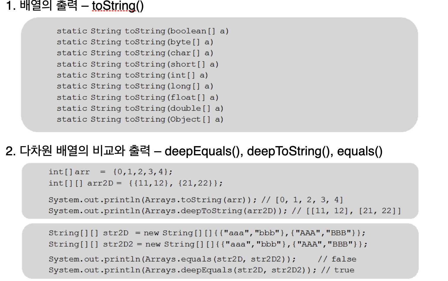 - λ°°μ΄μ λΉκ΅μ μΆλ ₯ equals(), toString()