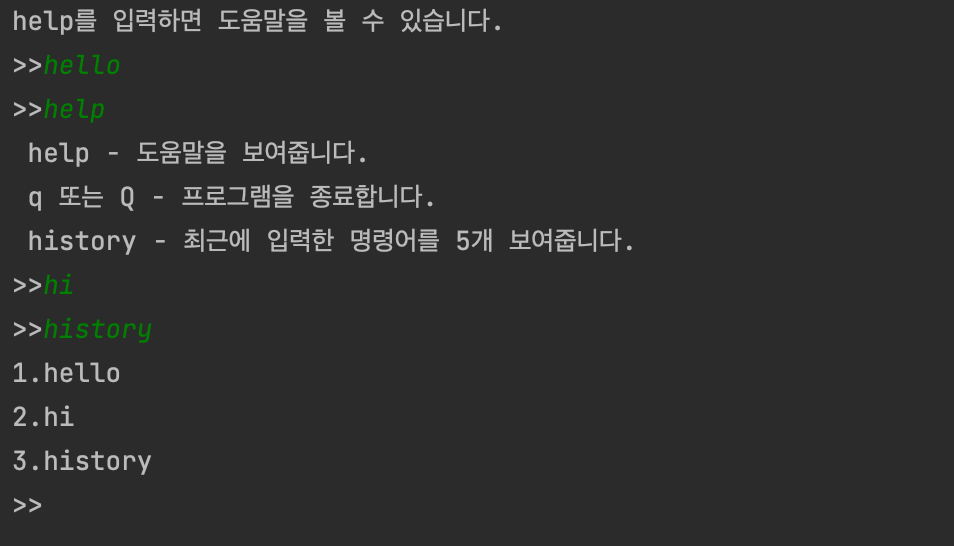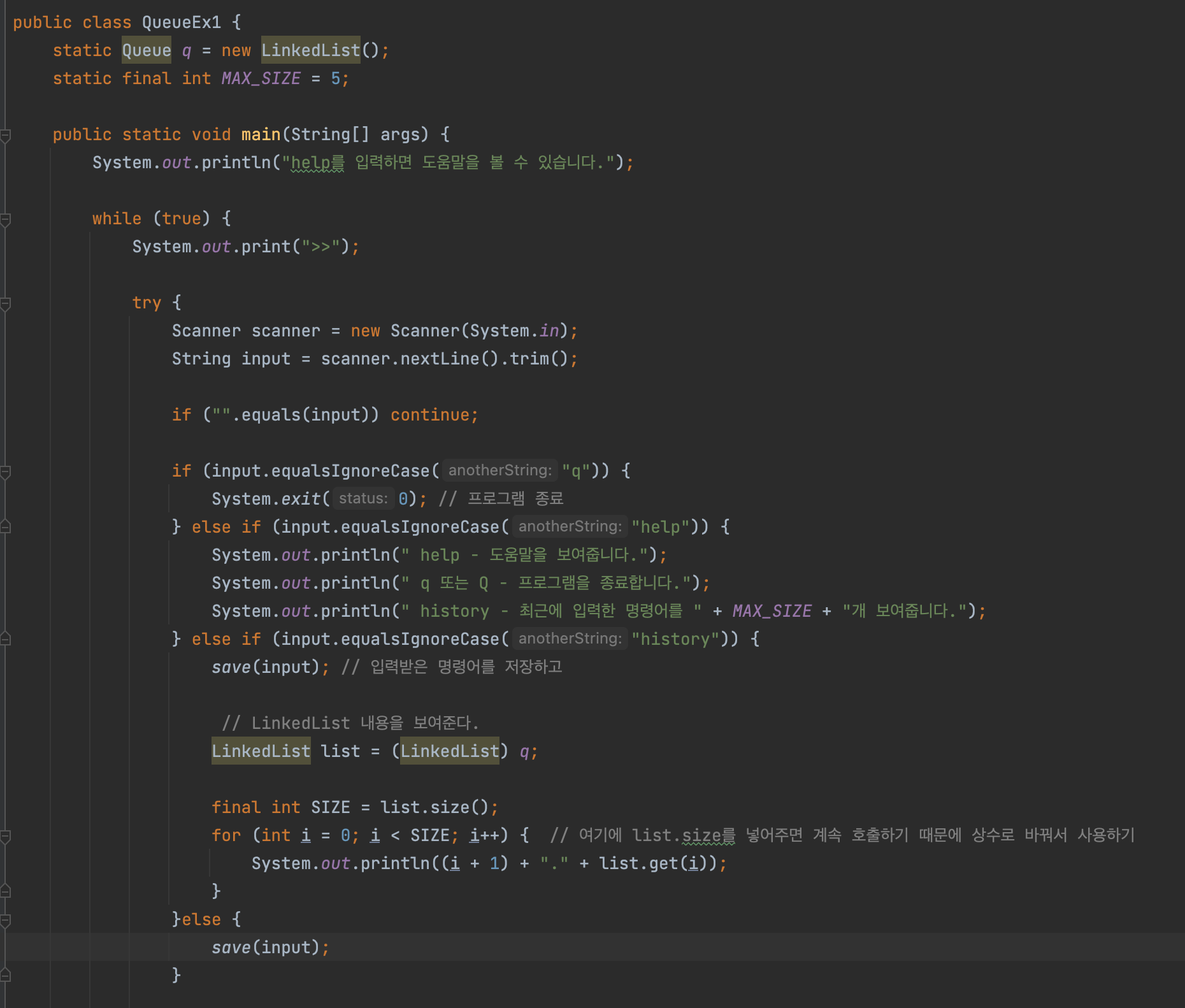 -> history λͺ λ Ήμ΄λ₯Ό queueλ₯Ό μ΄μ©ν΄μ ꡬνν μμ μ΄λ€.
