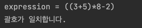 -> μ λ ₯ν μμμ κ΄νΈκ° μ¬λ°λ₯Έμ§ 체ν¬νλ μμ λ‘ '('λ₯Ό λ§λλ©΄ μ€νμ λ£κ³ ')'λ₯Ό λ§λλ©΄ μ€νμμ '('λ₯Ό κΊΌλΈλ€.