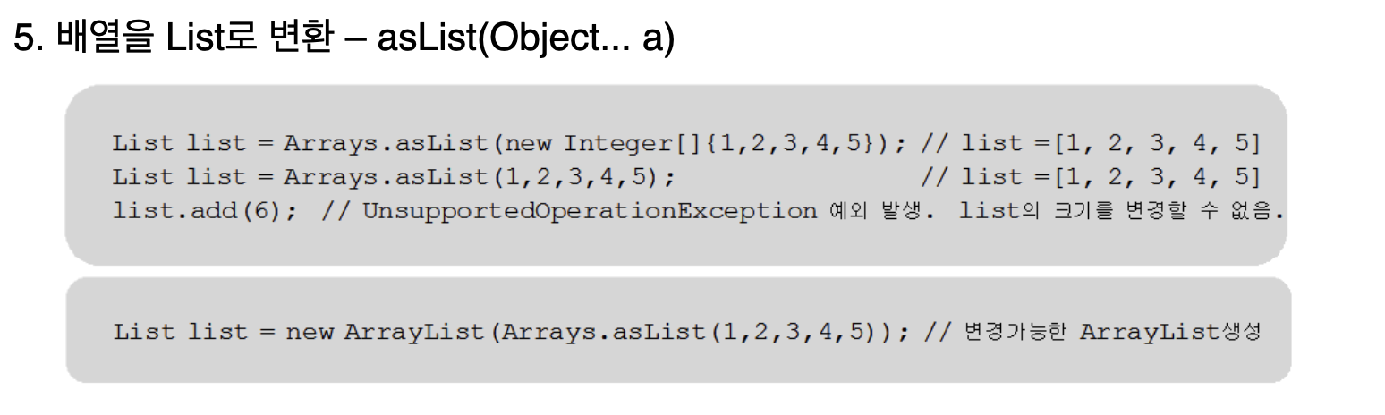 - λ°°μ΄μ Listλ‘ λ³ν asList(Object ..a)