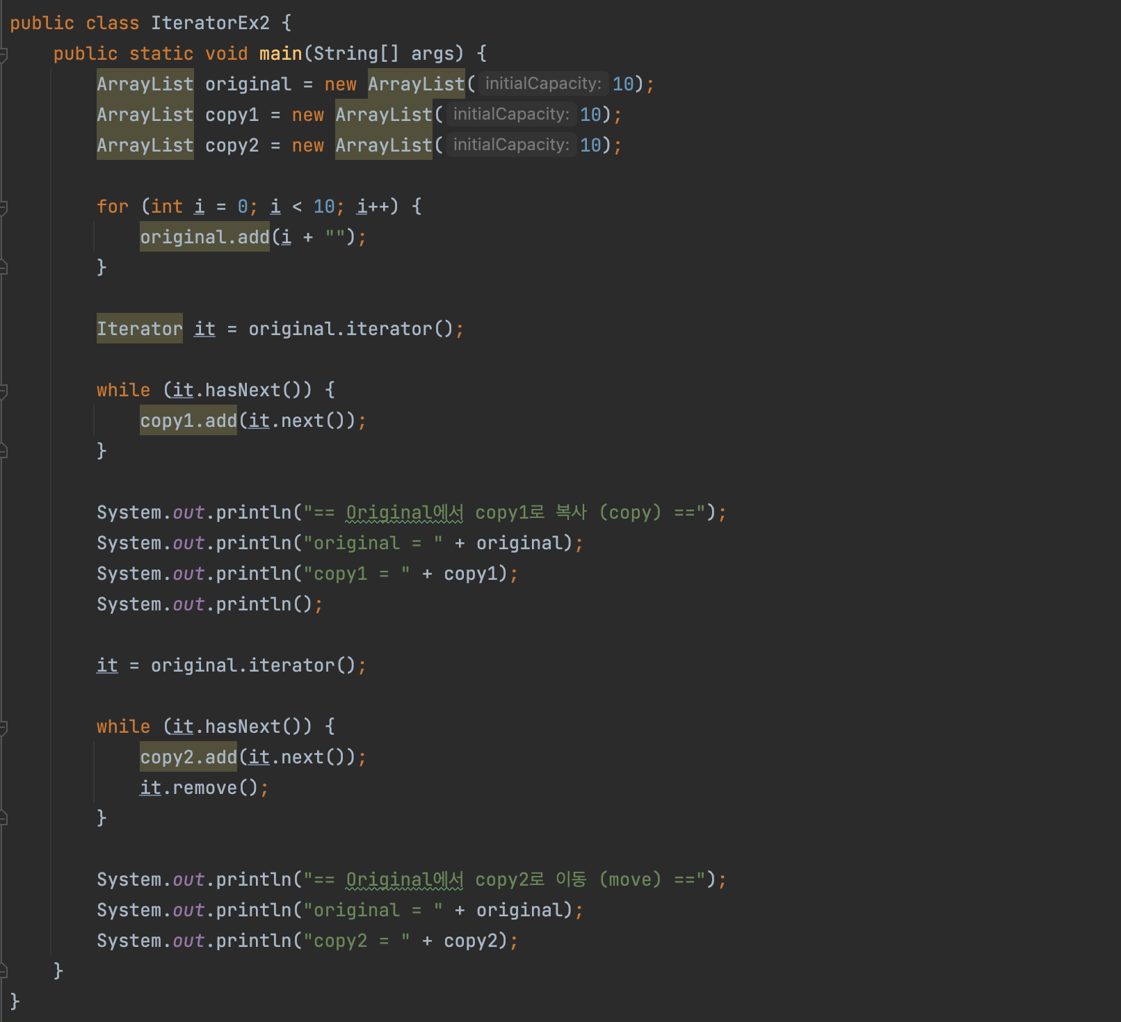 μ΄μ λ²μ μμ€ μμ±λ μμ€μμ νΈνμ μν΄μ λ¨κ²¨λκ³ μλ κ²λΏμ΄κΈ° λλ¬Έμ κ°λ₯νλ©΄ Iteratorλ₯Ό μ¬μ©νλ©΄ λλ€.