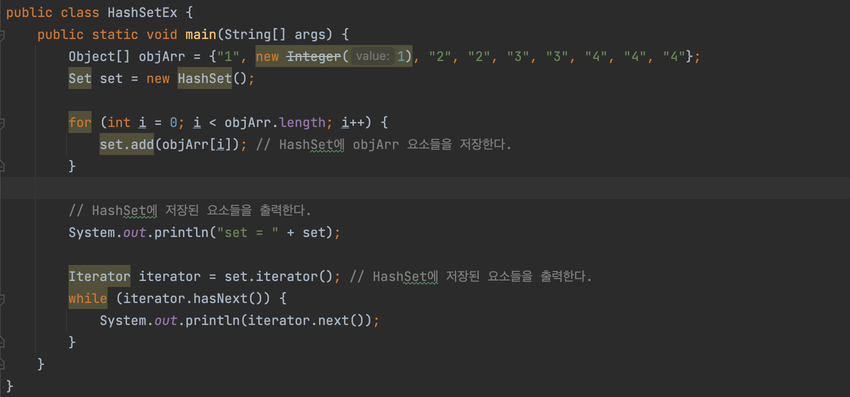 ArrayList์ ๊ฐ์ด List ์ธํฐํ์ด์ค๋ฅผ ๊ตฌํํ ์ปฌ๋ ์ ๊ณผ ๋ฌ๋ฆฌ HashSet์ ์ ์ฅ์์๋ฅผ ์ ์งํ์ง ์์ผ๋ฏ๋ก ์ ์ฅ์์๋ฅผ ์ ์งํ๊ณ ์ ํ๋ค๋ฉด LinkedHashSet์ ์ฌ์ฉํด์ผํ๋ค.