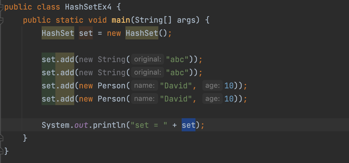 (์ฌ๊ธฐ์๋ ์ด๋ฆ๊ณผ ๋์ด๊ฐ ๊ฐ์ผ๋ฉด ๊ฐ์ ๊ฐ์ฒด๋ก ์ธ์ํ ๊ฒ์ด๋ค.)